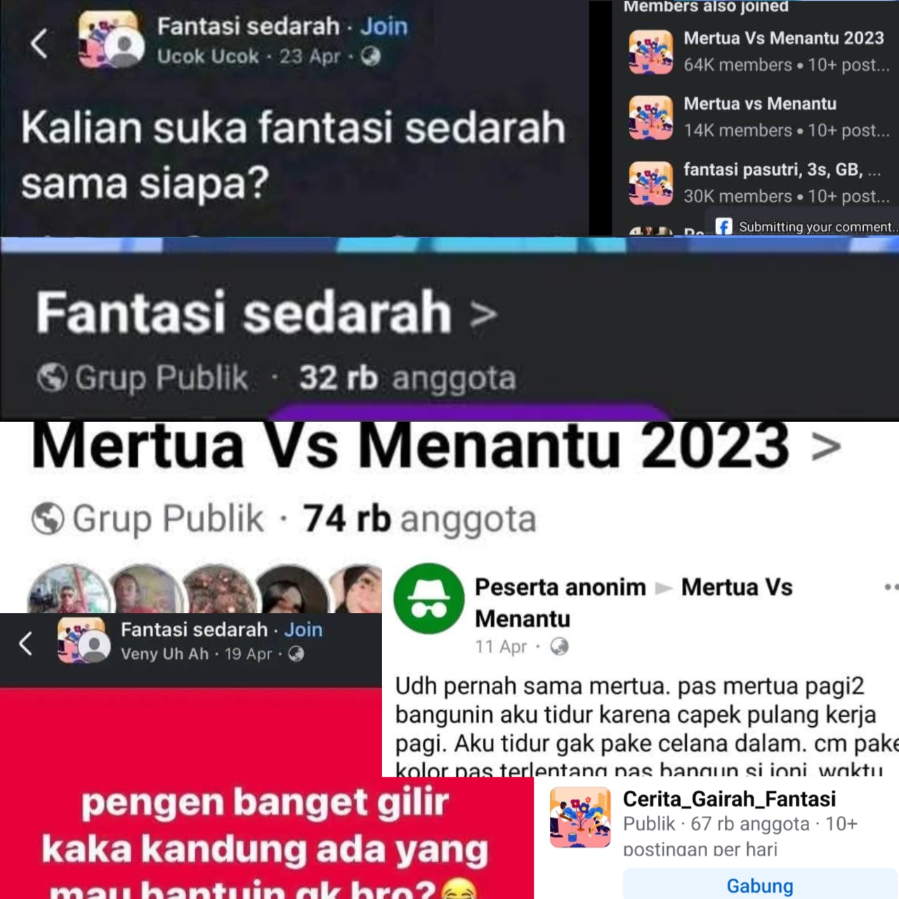 Facebook bernama ‘Fantasi Sedarah’ yang menyebarkan konten menyimpang bertema inses. di bawah umur.